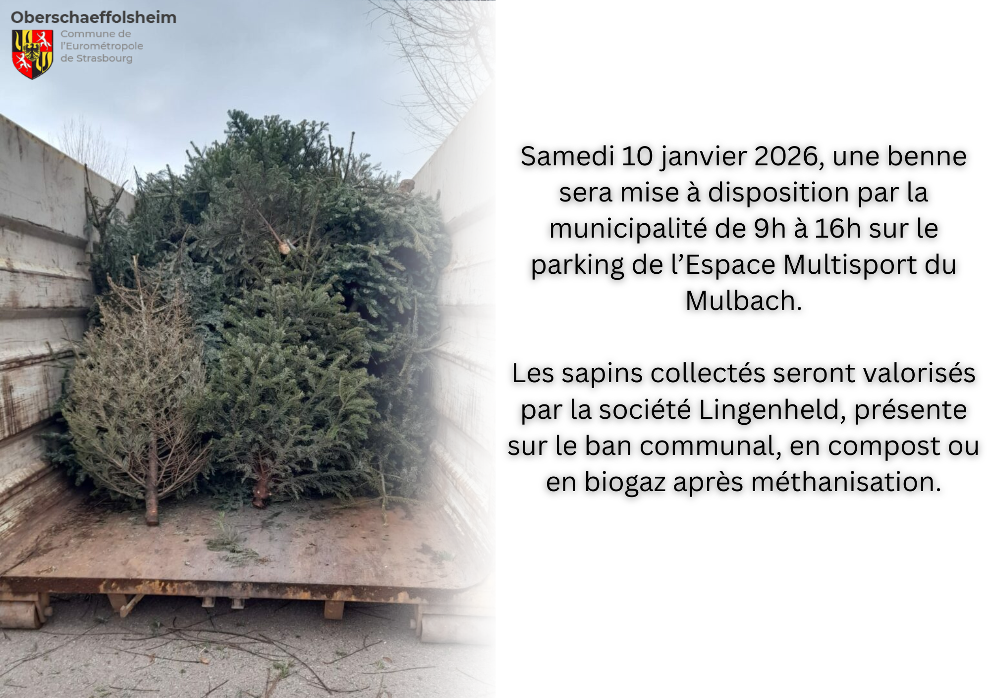 Pour découvrir les autres collectes de sapins dans l’Eurométropole, consultez l’article complet de Rue89Strasbourg ici : Où et quand se débarrasser de son sapin de Noël